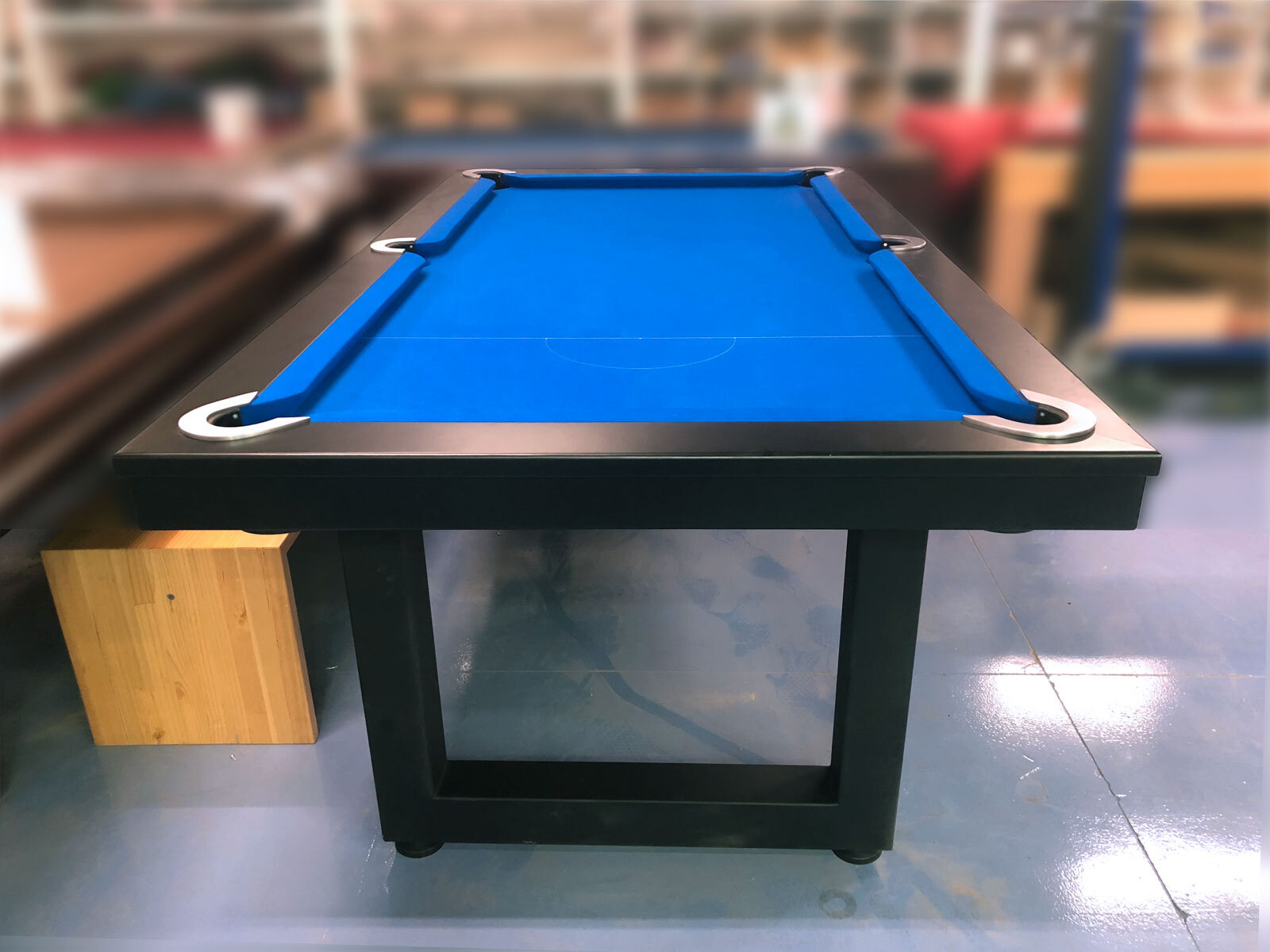 7ft Slate Pool Table. Special 7 Foot Slate Odyssey Pool Billiards Table with Blue Felt, Black Steel Frame Imperial pool table, the "Shadow" has an affordable pool table price, with 3-piece slate pool table construction, leather drop-pockets, and with Billiard pool table stylings, and the "Shadow" is offered for sale in 7 ft or 8 ft pool table sizes. Its modern and contemporary design combined with the best playing conditions gives you the confidence to play your best game, no holds barred.